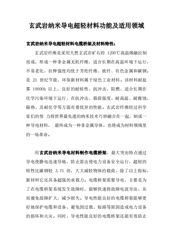 玄武岩纳米导电电缆桥架