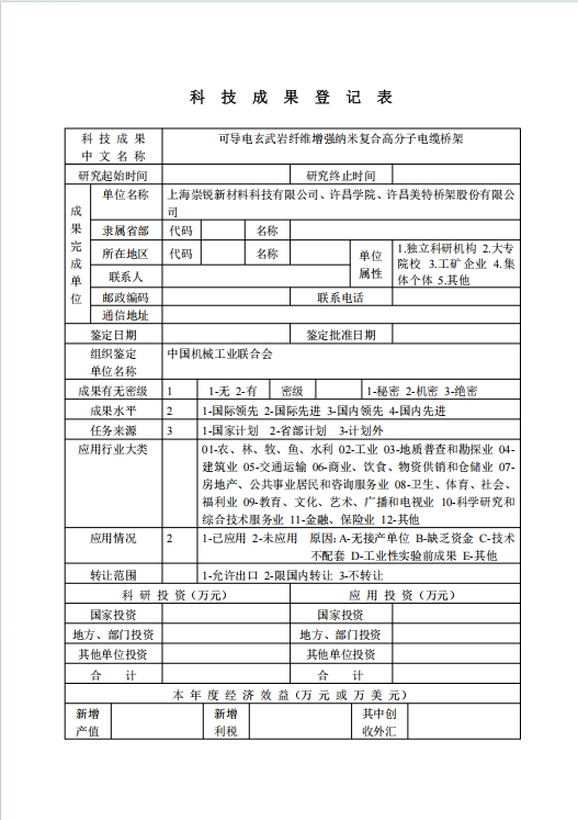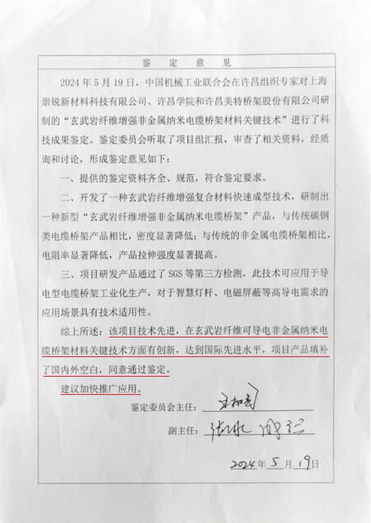 玄武岩纤维增强纳米导电非金属电缆桥架新产品鉴定会